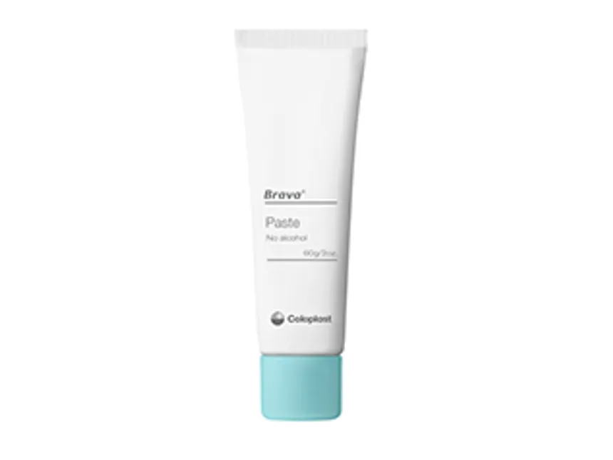 La pâte Brava sans alcool remplit les plis et les creux pour maintenir un ajustement serré entre la stomie et l'appareil afin de réduire les fuites. Protection sans piqûre contre les fuites.